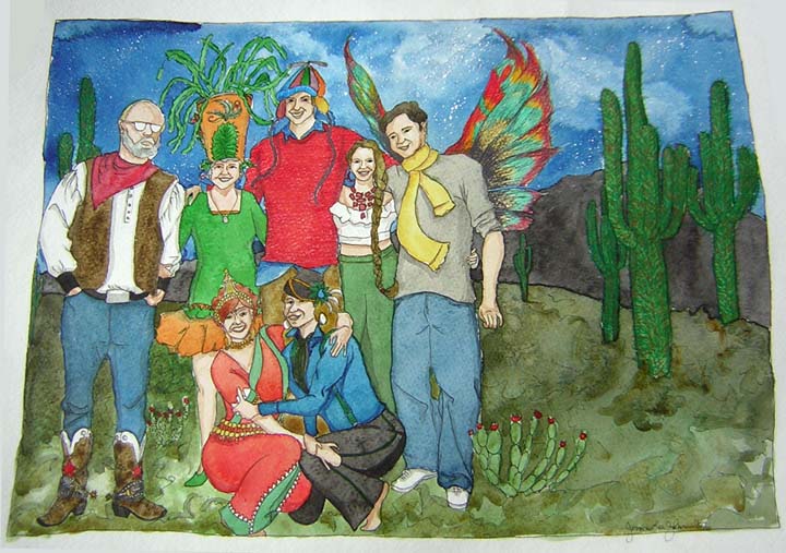 Embracing these identities also helps me to understand that they are each one aspect of myself. When I remember that I take a costume on and off, I’m reminded that Suburban Wife-and-Mother is also one identity, albeit one that I wear a lot. But who’s to say I can’t be Edgy Bisexual Woman-About-Town AND Suburban Wife-and-Mother? What isn’t changing is that I am an artist at heart who loves to connect with other people, both my family and other creatives.